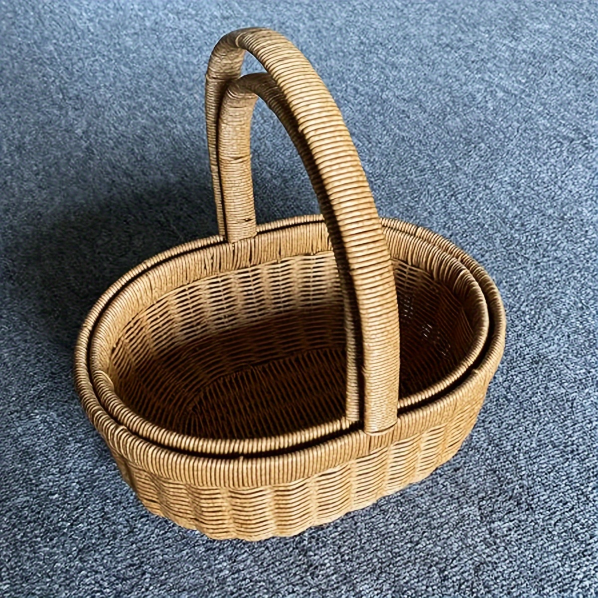 Handwoven Basket Handwoven Japanese-Style Basket | Imitation Rattan, Large Picnic, Handmade Fruit, Egg
